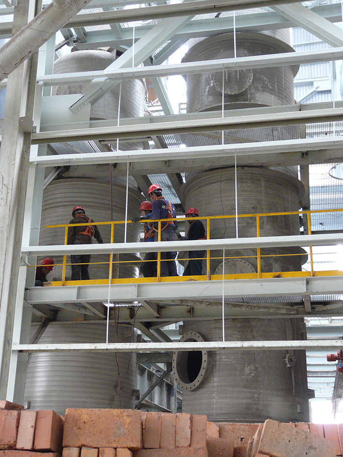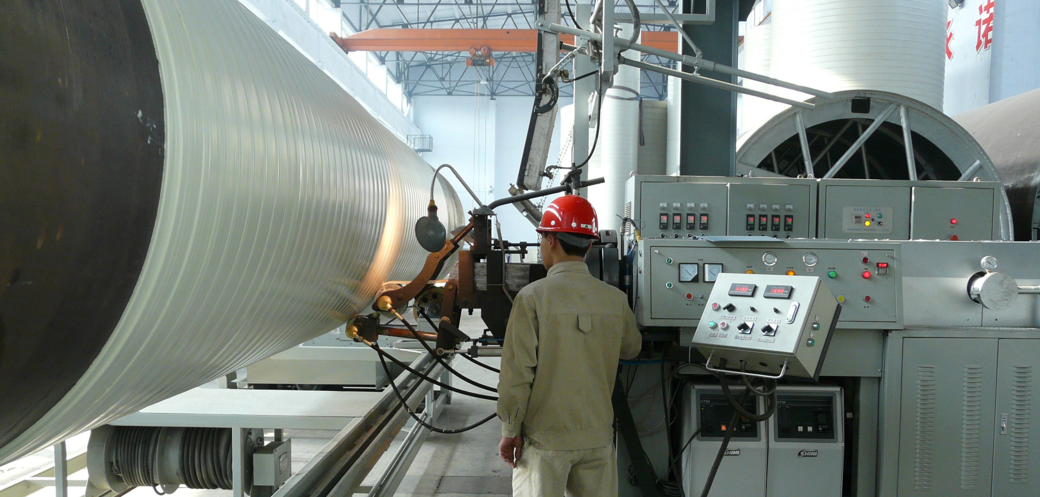 孚拉瑞斯公司引進先進的螺旋纏繞疊加成型機組和工藝,筒節(jié)可一次加工成型,無焊縫,厚度可達65mm以上;同時,可實現(xiàn)筒節(jié)上薄下厚,使筒節(jié)整體受力均勻、設計合理,可確保儲罐的機械強度和安全可靠性。